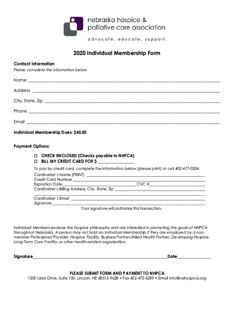 2020 Individual Membership Form Contact Information Please complete the information blowlamp ___ Address City, State, Zip ___Phone ___ Email ___ Individual Membership Dues: $45.00Payment Options: