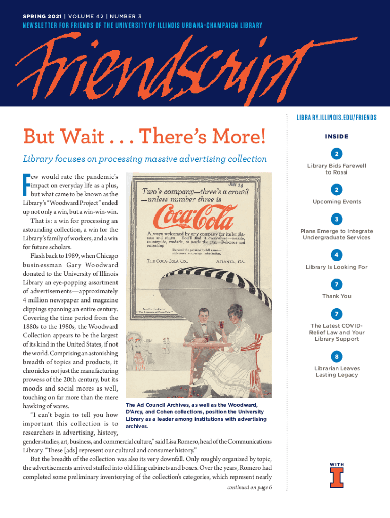 SPRING 2021 | VOLS M E 4 2 | N UM BER 3NE W S L E T T E R F O R F RIE ND S OF The UNI V E R S I T Y OF IL L INDIA URB A N A CH A MPA IGN L IBR A RY But Wait. . . There's More! Library focuses on processing