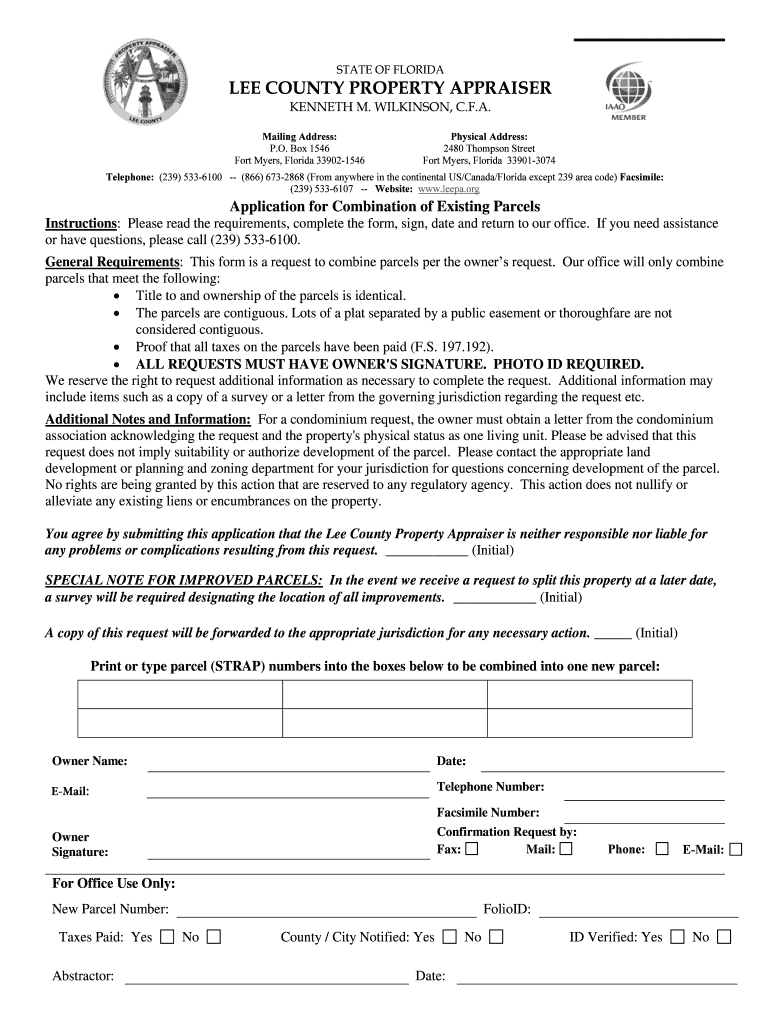 Get the free Lee County Property Appraiser Application for Combination of ... - leepa