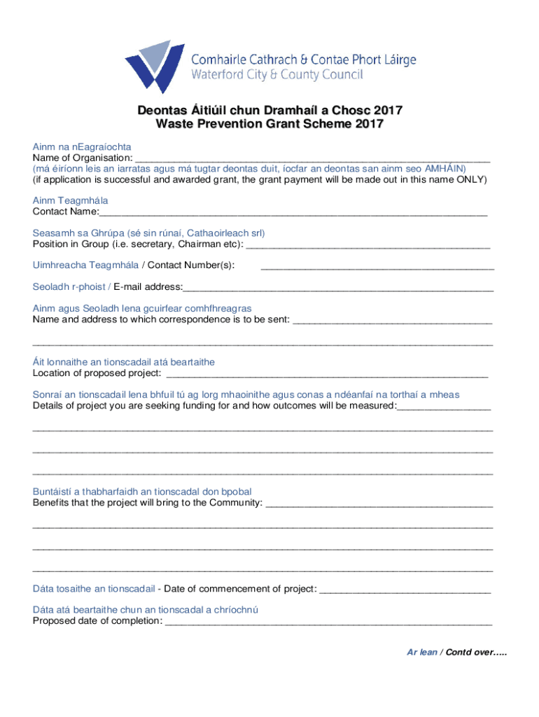 Get the free Waste Prevention Grant Scheme 2017 - Form