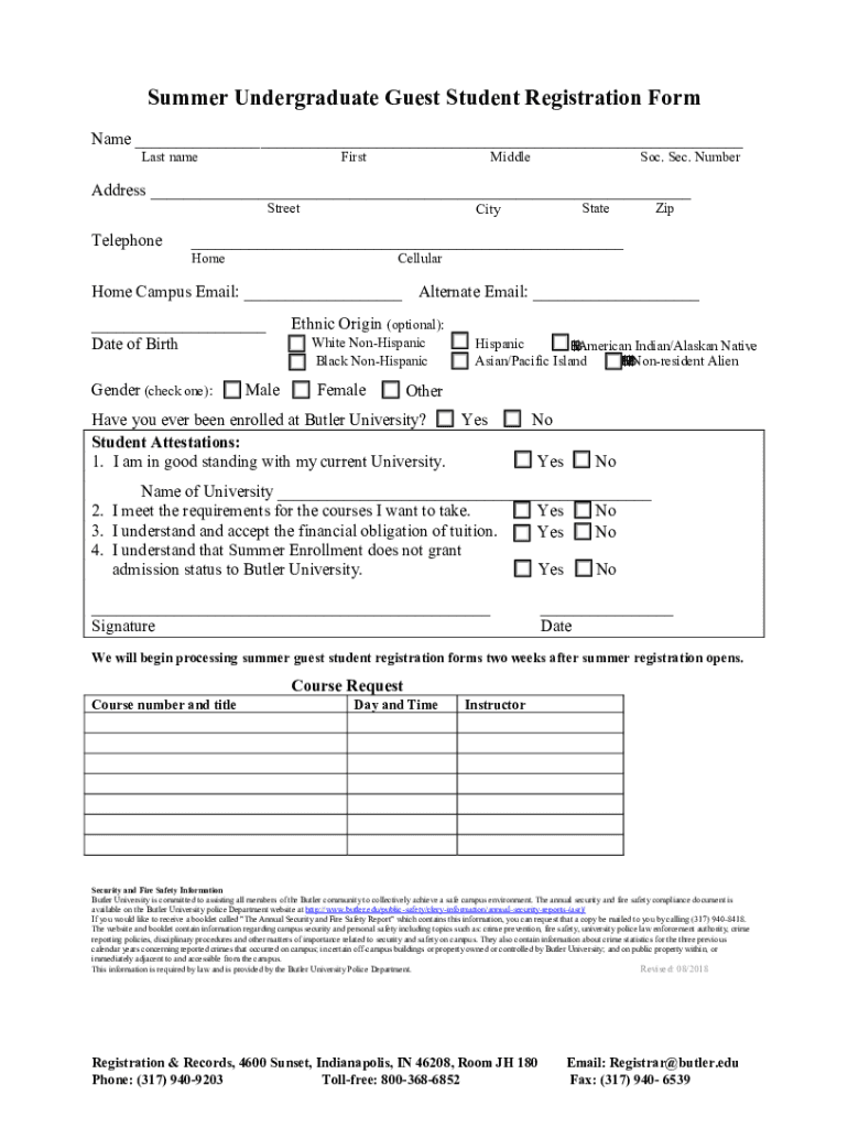 Get the free Summer Undergraduate Guest Student Registration Form - Butler University