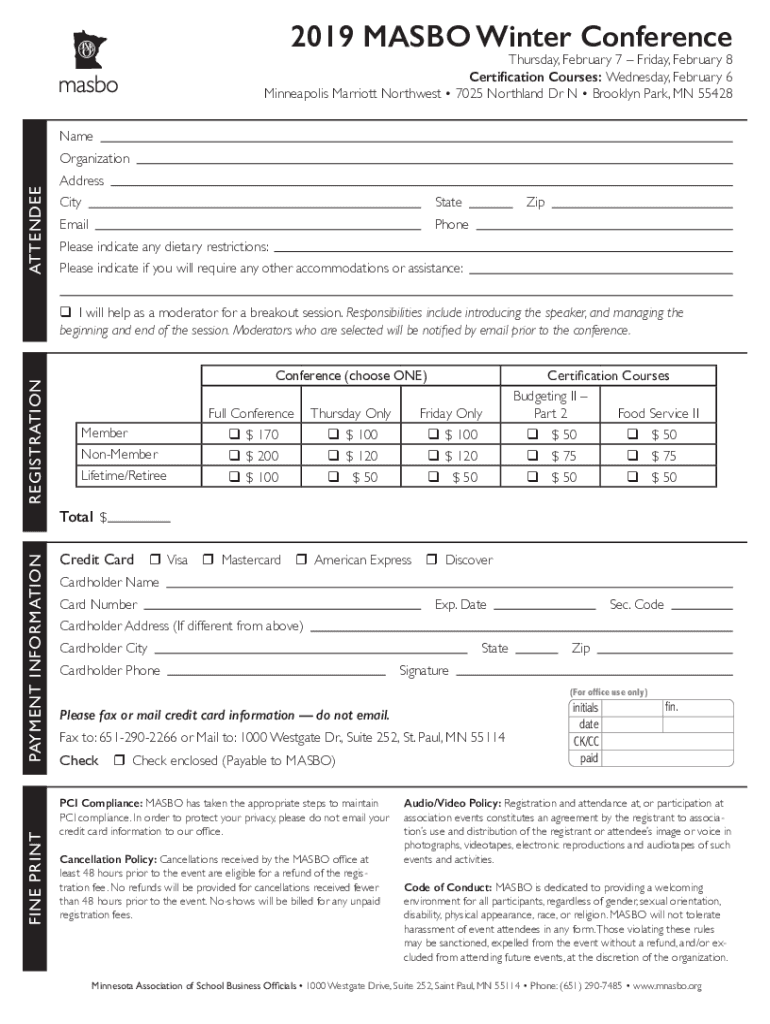 2019 MAMBO Winter Conference Thursday, February 7 Friday, February 8 Certification Courses: Wednesday, February 6 Minneapolis Marriott Northwest 7025 Northland Dr N Brooklyn Park, MN 55428 Name ATTENDEEOrganization