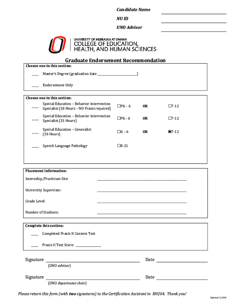 UNO AdvisorGraduate Endorsement RecommendationChoose one in this section: