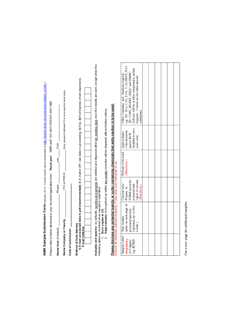 Http://www2.chem.umd.edu/nmr/contact_us.htm)Title header (print on each page of processed spectra) optional, up to five words Use a new page for additional samples. Sample Label Mandatory (25 digits)