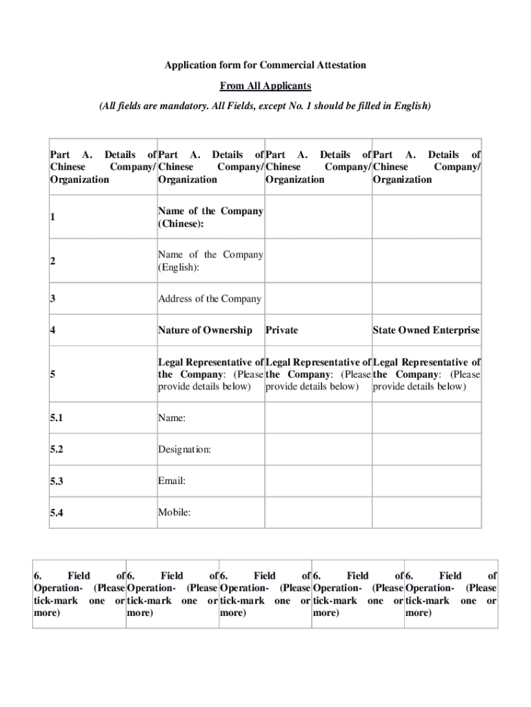 Application form for Commercial Attestation From All Applicants (All fields are mandatory. All Fields, except No. 1 should be filled in English)Part A. Details of Part A. Details of Part A. Details