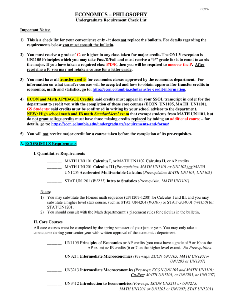 ECPHECONOMICS PHILOSOPHY Undergraduate Requirement Check List Important Notes: 1) This is a checklist for your convenience only it does not replace the bulletin. For details regarding the requirements
