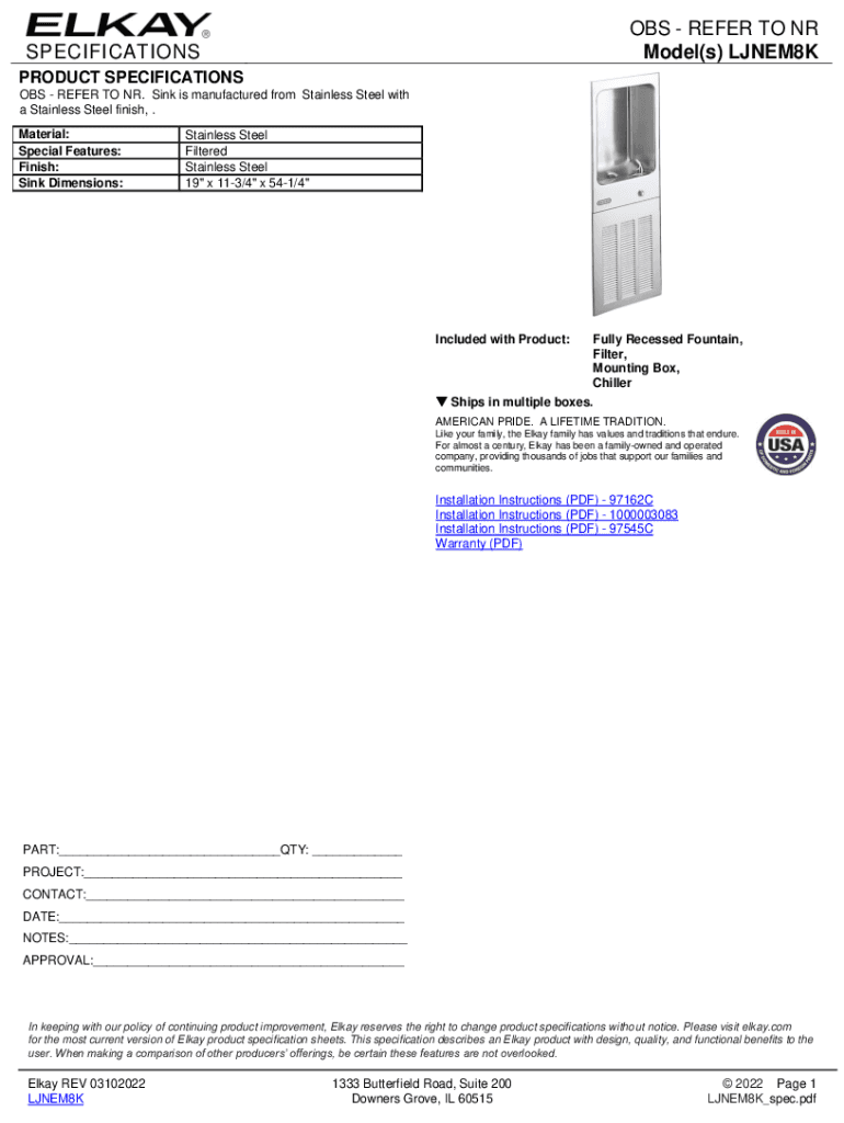Email, fax, or share your elkay cooler wall mount form via URL. You can also download, print, or export forms to your preferred cloud storage service.
