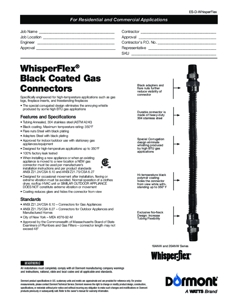 ESDWhisperFlexFor Residential and Commercial Applications Job Name___ Job Location___ Engineer___ Approval ___Contractor___ Approval___ Contractor\'s P.O. No.___ Representative___ SKU___WhisperFlex
