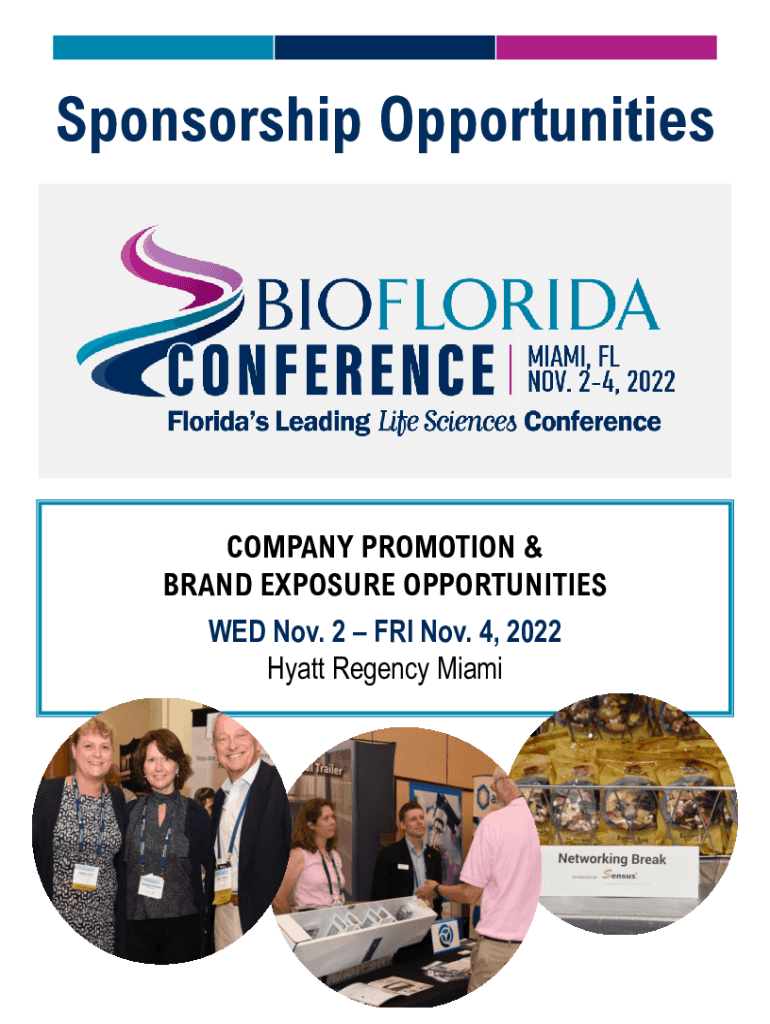 Sponsorship OpportunitiesCOMPANY PROMOTION & BRAND EXPOSURE OPPORTUNITIES WED Nov. 2 FRI Nov. 4, 2022 Hyatt Regency Marabout the 2022 Conference Florida\'s Leading Life Sciences Conference WHY ATTEND