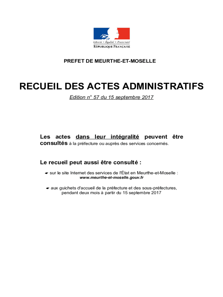 Get the free www.moselle.gouv.frPublicationsRecueil-desRecueil des Actes Administratifs de la Prf...