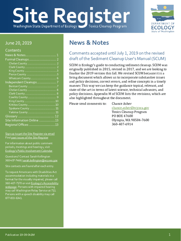 June 20, 2019, Contents News & Notes.................................. 1 Formal Cleanups .............................. 2 Ch élan County ..................................... 2 Clark County ........................................