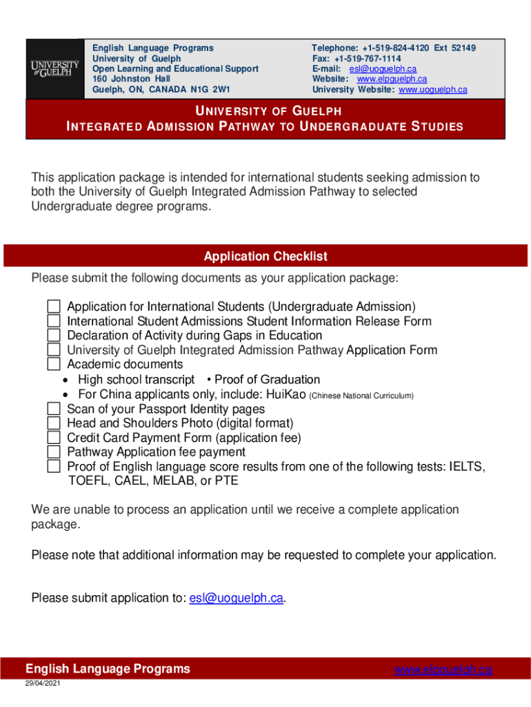 AP English Language Programs University of Guelph Open Learning and Educational Support 160 Johnston Hall Guelph, ON, CANADA N1G 2W1I NTEGRATEDTelephone: +15198244120 Ext 52149 Fax: +15197671114 Email:
