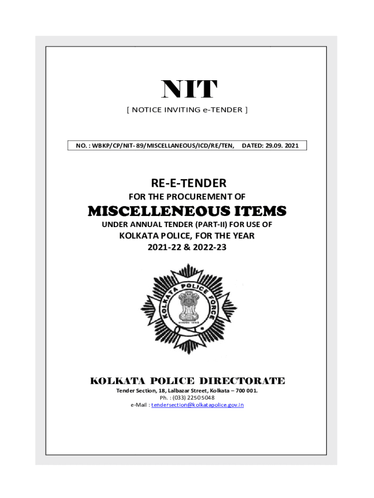 Notice Inviting eTenderPage|1NIT [NOTICE INVITING tender e]NO. BKP/CP/NIT 89/MISCELLANEOUS/ICD/RE/TEN, DATED:: 29.09. 29 2021REETENDER FOR THE PROCUREMENT OFMISCELLEN OUT ITEMS MISCELLANEOUS UNDER