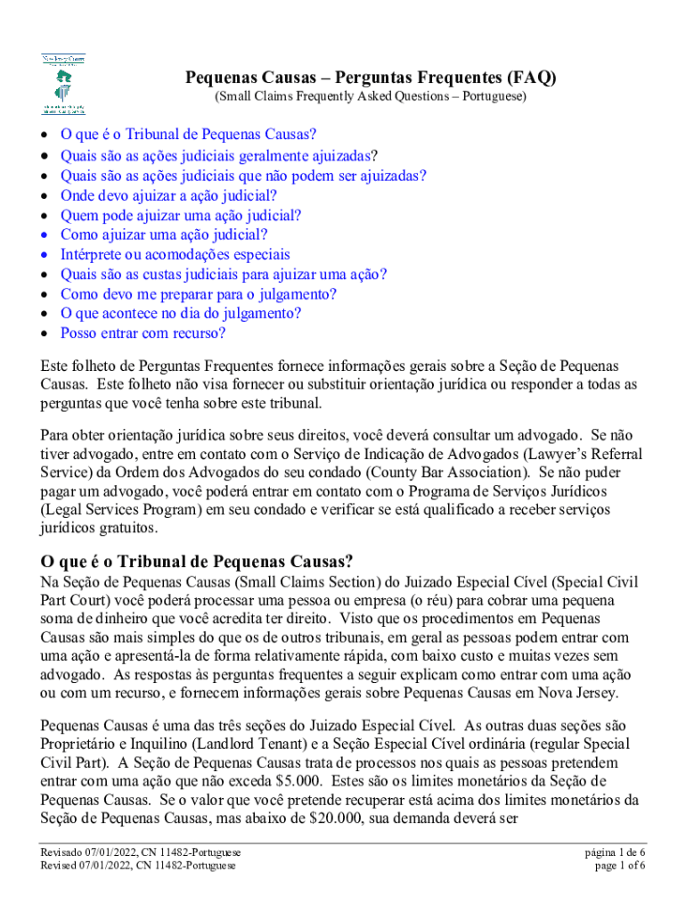 Sequence Causes — Personas Frequented (FAQ) (Small Claims Frequently Asked Questions — Portuguese) • O Que é o Tribunal de Pequenas Causes? • Quiet SAO as acres judicial Geraldine ajuizadas?