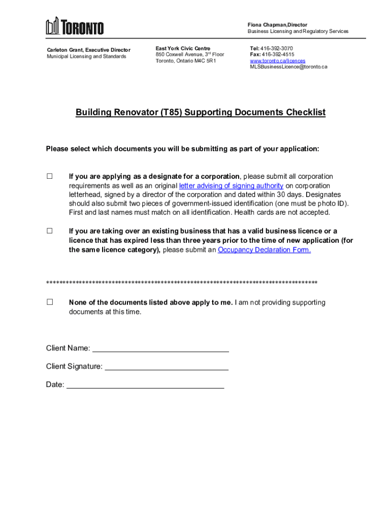 Fiona Chapman, Director Business Licensing and Regulatory Services Carleton Grant, Executive Director Municipal Licensing and Standards East York Civic Center 850 Cowell Avenue, 3rd Floor Toronto,