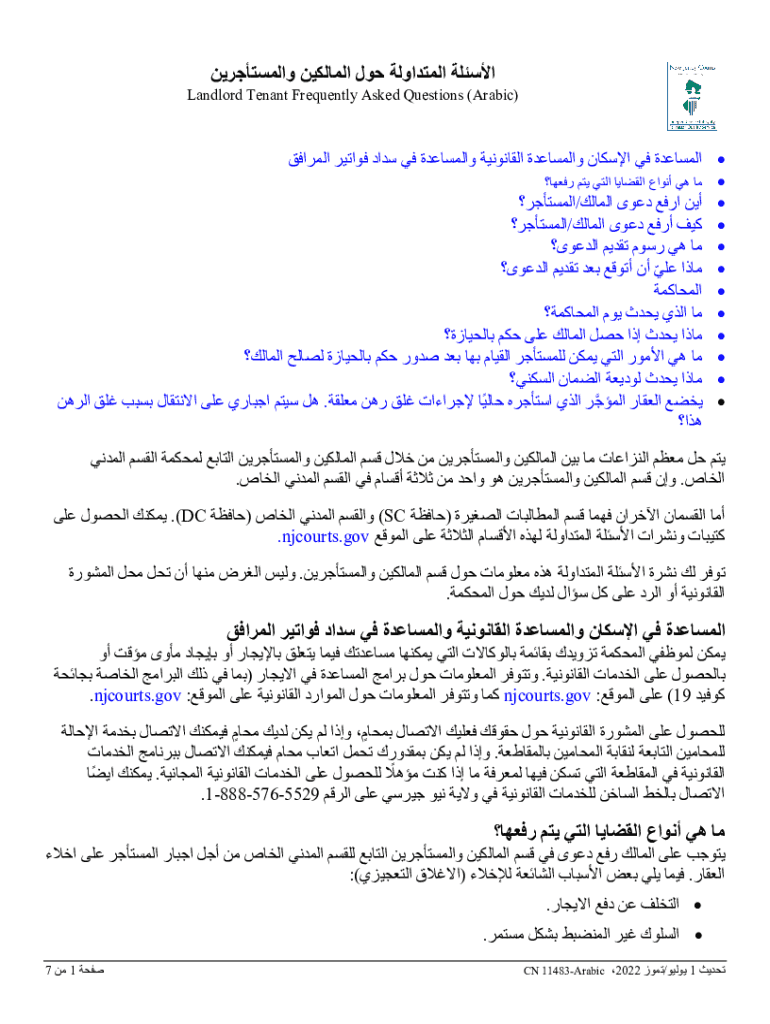 )Landlord Tenant Frequently Asked Questions (Arabic