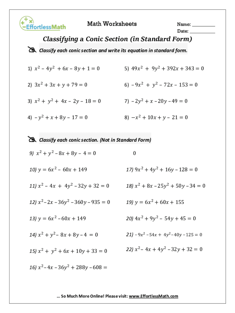How to fill out wwwmathworksheetscentercomclassifyconicgeoclassifying a conic section