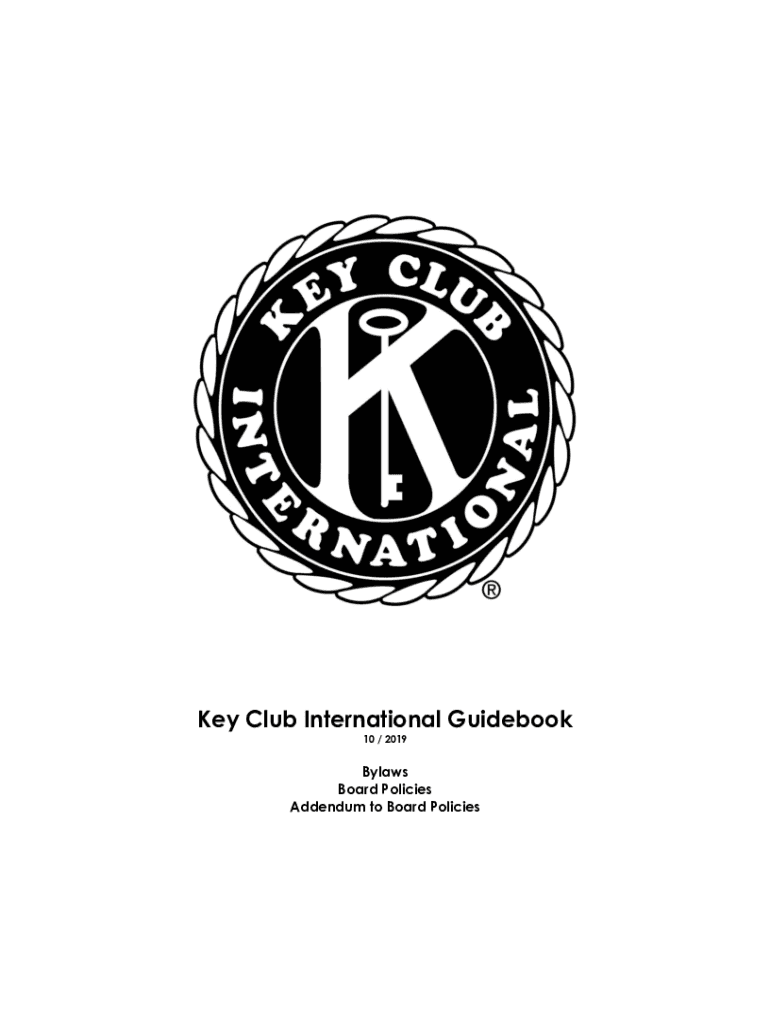 209AYKey Club International Guidebook 10 / 2019Bylaws Board Policies Addendum to Board PoliciesKEYCLUBTable of contents Part I: Key Club International Bylaws Article I. Name and use of name and emblem