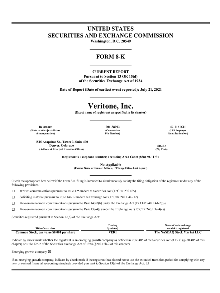 Veritone Inc is required to file its financial statements and reports with the Securities and Exchange Commission (SEC) as a publicly traded company.