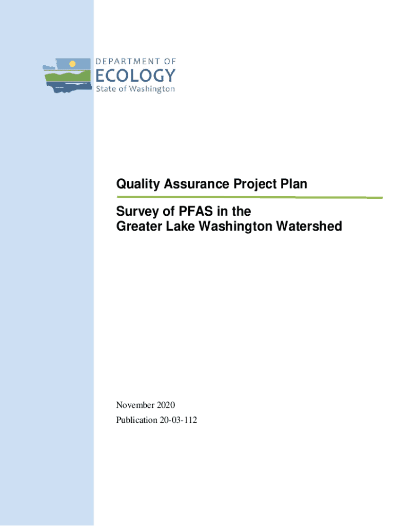 Quality Assurance Project Plan Survey of PAS in the Greater Lake Washington Watershed November 2020 Publication 2003112Publication Information Each study conducted by the Washington State Department