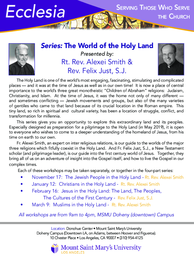 EcclesiaServing Those Who Serve the ChurchSeries: The World of the Holy Land Presented by:Rt. Rev. Alexei Smith & Rev. Felix Just, S.J. The Holy Land is one of the worlds most engaging, fascinating,