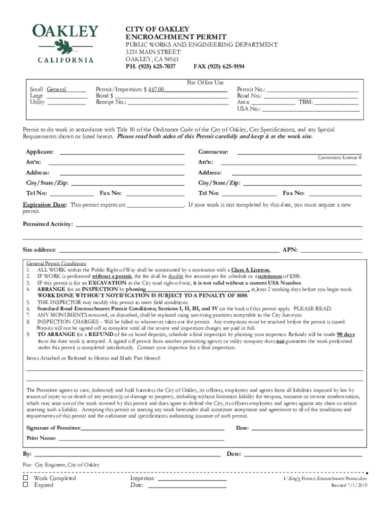 Get the free Encroachment Permit - City of Oakley - City of Oakley