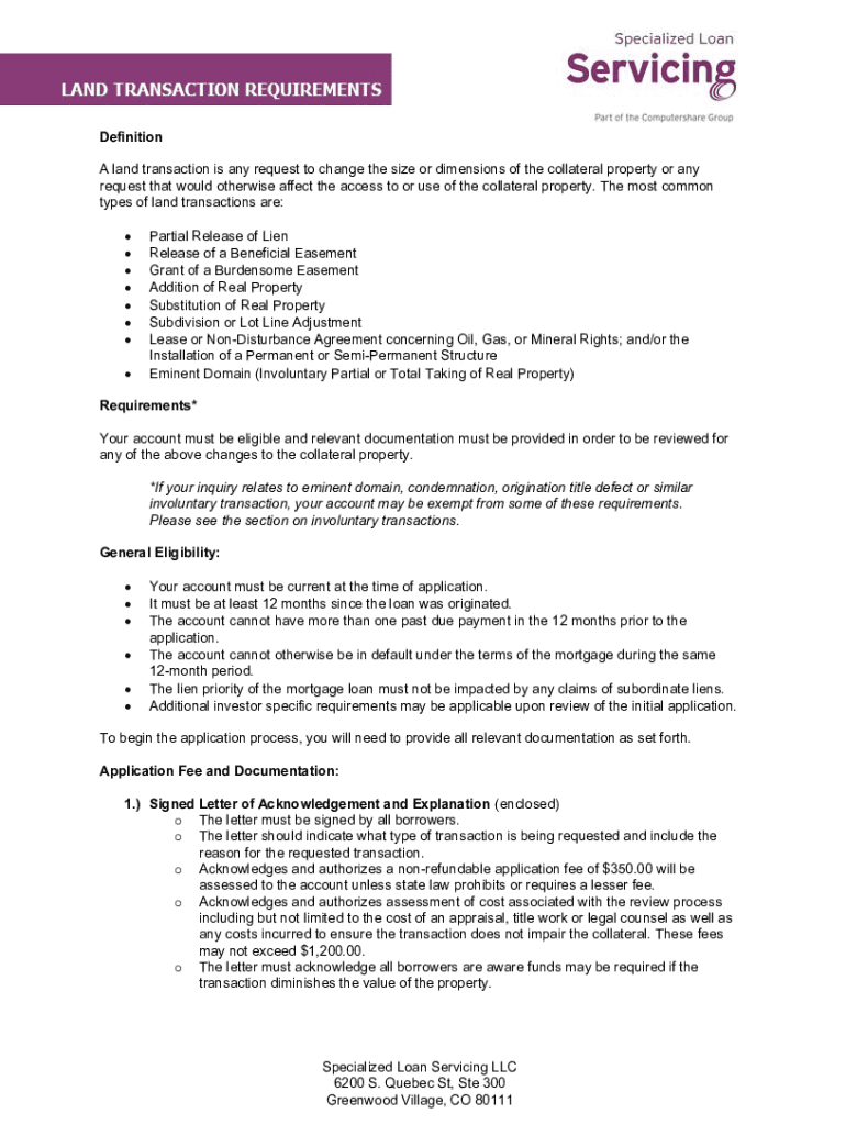 Any individual or entity involved in a land transaction with Shellpoint Mortgage Servicing is required to file the wwwshellpointmtgcomhelpful-tipsfrequentlyland transaction request requirements.