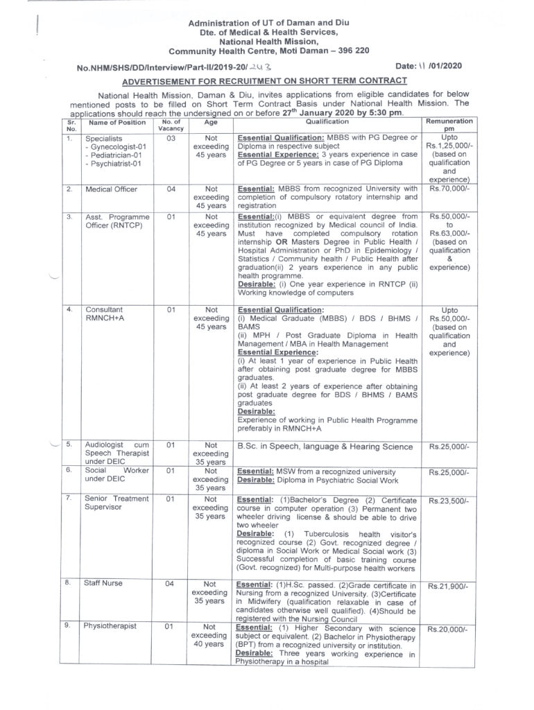 APPLICATION FORM NATIONAL HEALTH MISSION DIRECTORATE OF MEDICAL & HEALTH SERVICES UT OF DAMON & Misname of Post applied for.........................................................................................