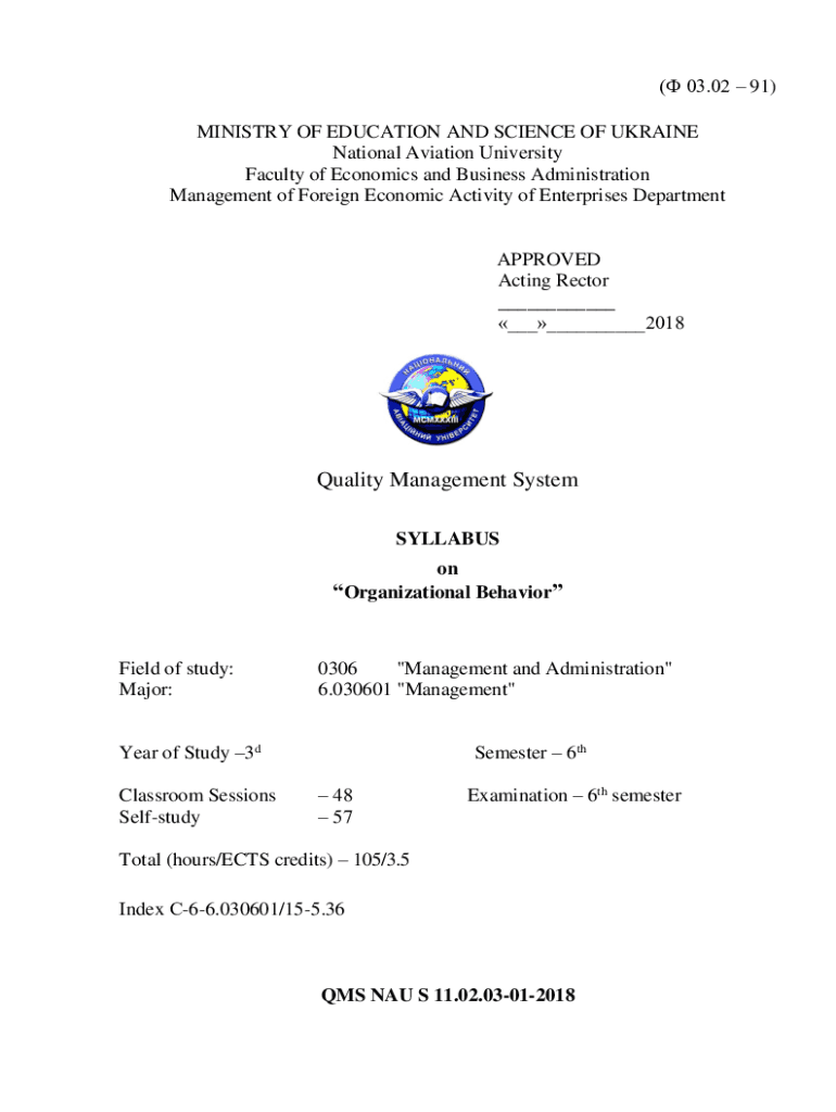 (03.02 91) MINISTRY OF EDUCATION AND SCIENCE OF UKRAINE National Aviation University Faculty of Economics and Business Administration Management of Foreign Economic Activity of Enterprises DepartmentAPPROVED
