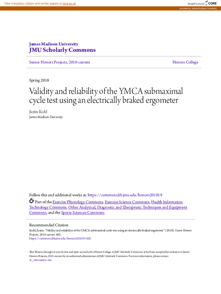 Get the free Validity and reliability of the YMCA submaximal cycle test ...