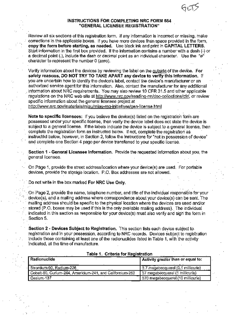 Get the free NRC Form 664 "General Licensee Registration" - TemplateRoller