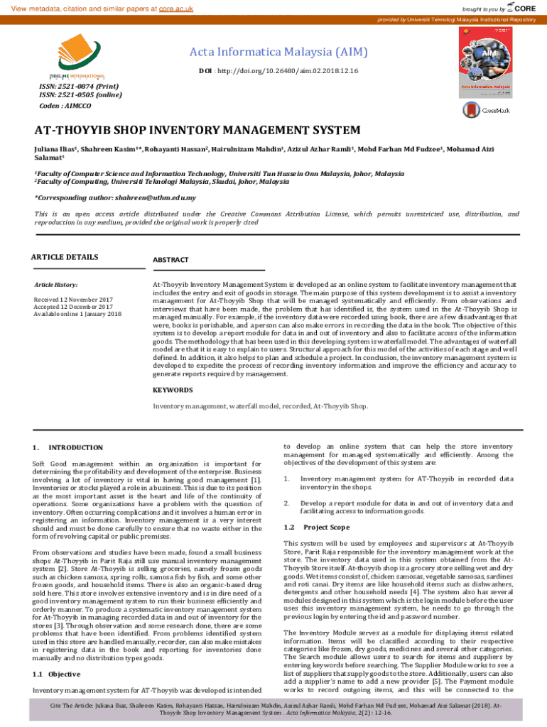 View metadata, citation and similar papers at core.ac.UK ACTA Informatica Malaysia (AIM) 2(2) (2018) 1216brought to you byCOREprovided by University Technology Malaysia Institutional RepositoryActa
