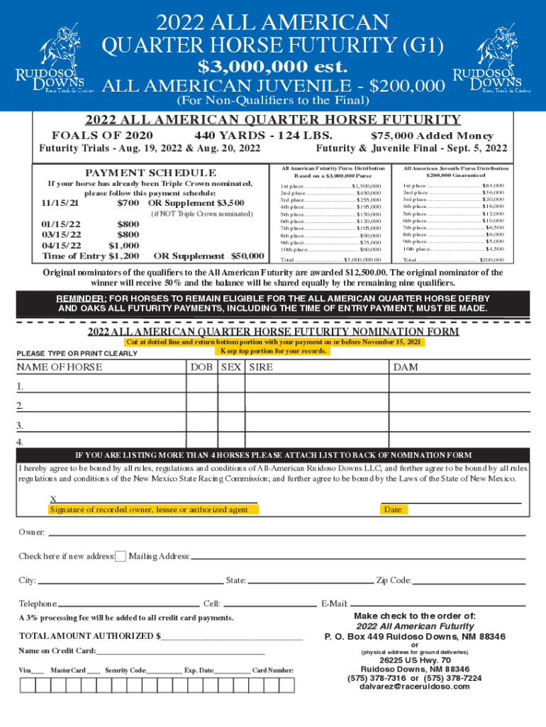 Obtain the nomination form for the All American Futurity.
