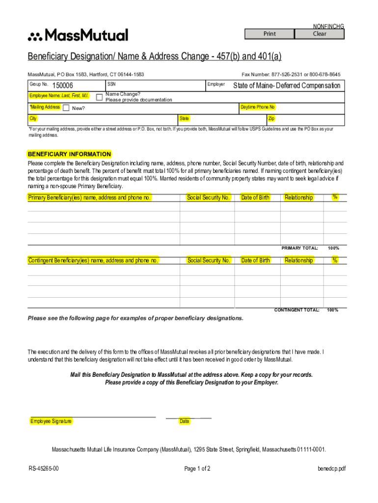 ClearPrintBeneficiary Designation/ Name & Address Change 457(b) and 401(a)