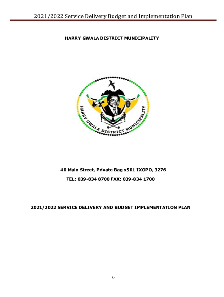 2021/2022 Service Delivery Budget and Implementation Planetary GALA DISTRICT MUNICIPALITY40 Main Street, Private Bag x501 IX OPO, 3276 TEL: 039834 8700 Faxes: 039834 17002021/2022 SERVICE DELIVERY