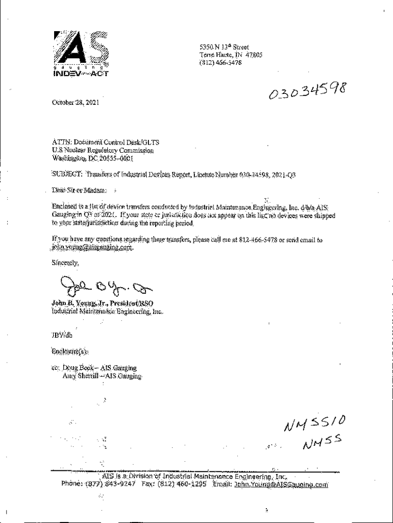(812) 4665478October\'2:8, 2021AUN: Document Control Desk/GETS