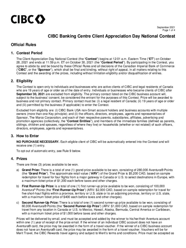 September 2021-Page 1 of 4CIBC Banking Center Client Appreciation Day National Contest Official Rules 1. Contest Period The Client Appreciation Day National Contest (the Contest) begins at 12:01 a.m.