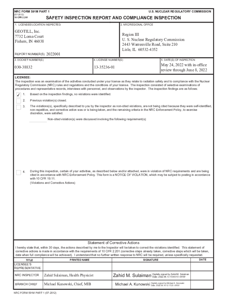 Get the free Geotill, Inc. - NRC Form 591M, Inspection Report No. 03038832/2022001