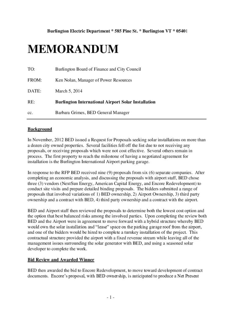 Burlington Electric Department * 585 Pine St. * Burlington VT * 05401MEMORANDUM TO:Burlington Board of Finance and City Councilor:Ken Nolan, Manager of Power ResourcesDATE:March 5, 2014RE:Burlington
