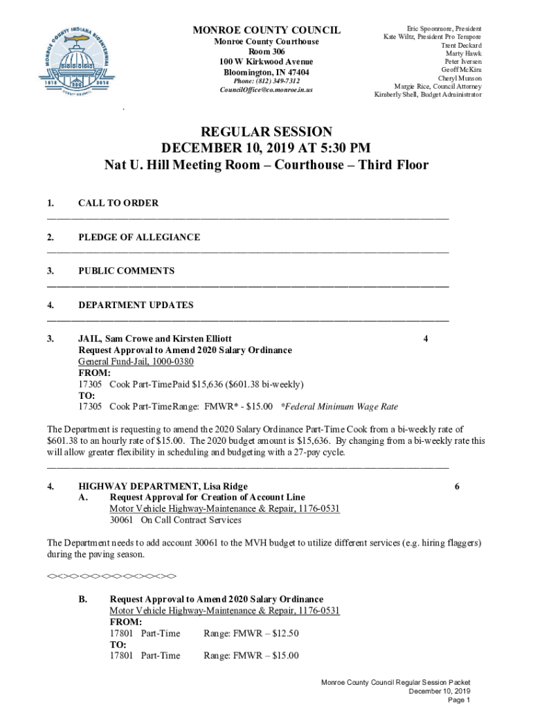 Get the free MONROE COUNTY COUNCIL Eric Spoonmore, President Monroe County ...