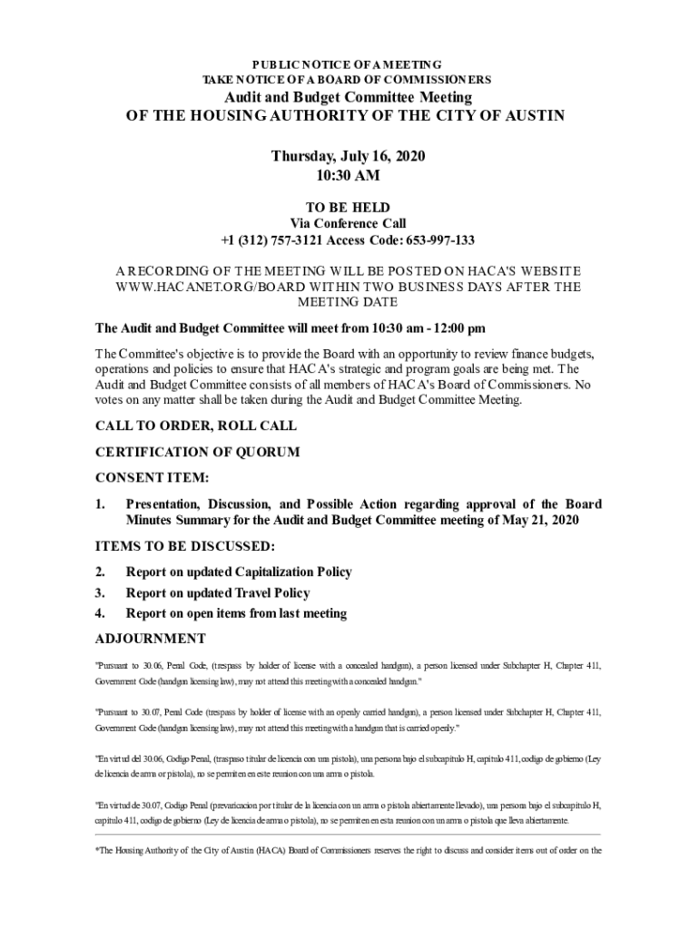 Get the free Audit and Budget Packet - Housing Authority City Of Austin