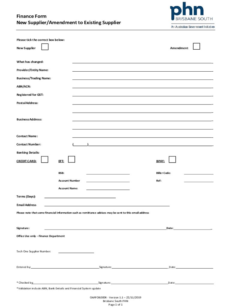 Get the free Finance Form New Supplier/Amendment to Existing Supplier - bsphn org