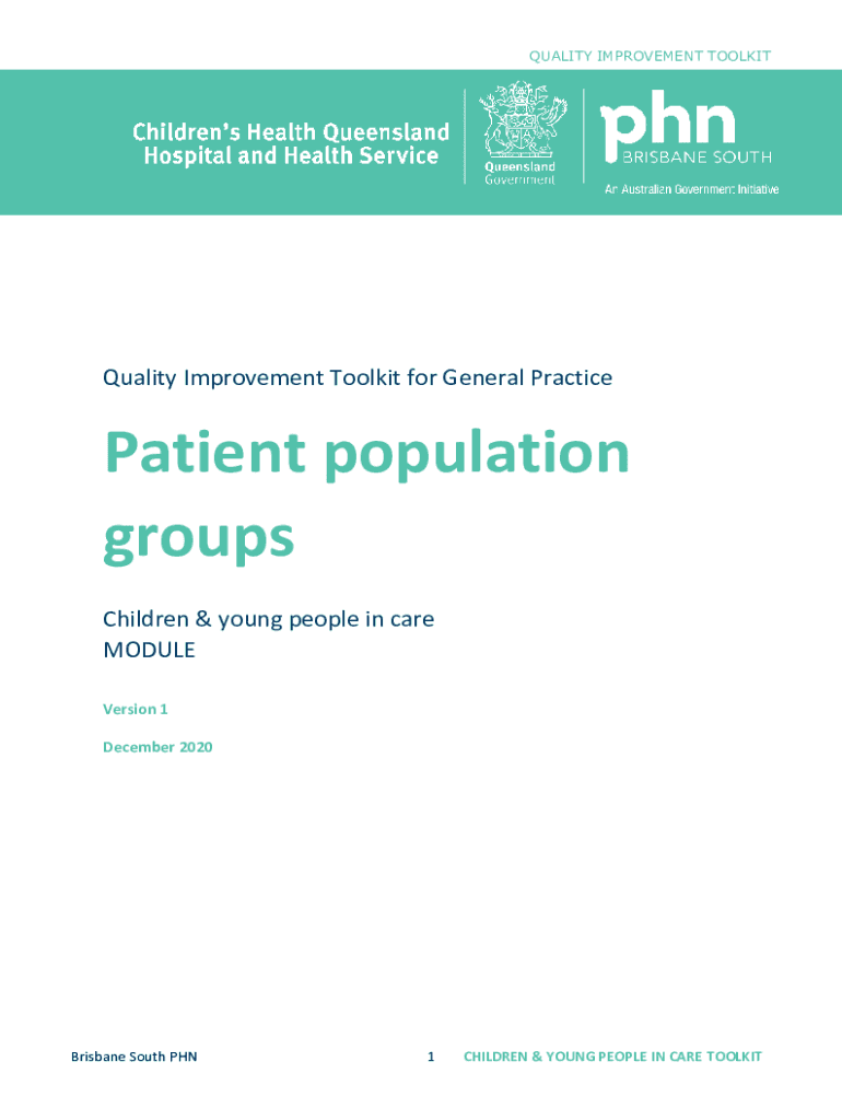 QUALITY IMPROVEMENT TOOLKITQuality Improvement Toolkit for General PracticePatient population groups Children & young people in care MODULE Version 1 December 2020Brisbane South PHN1CHILDREN & YOUNG