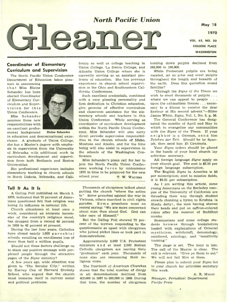 North Pacific UnionGleaner Coordinator of Elementary Curriculum and Supervision The North Pacific Union Conference Department of Education takes pleasure in announcing that Miss Elaine Chandler has