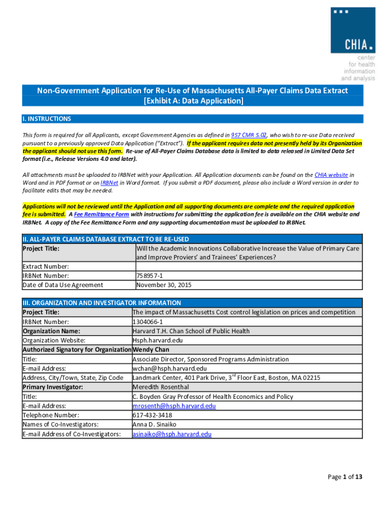 Get the free Non-Government Application for Re-Use of Massachusetts All-Payer Claims ...