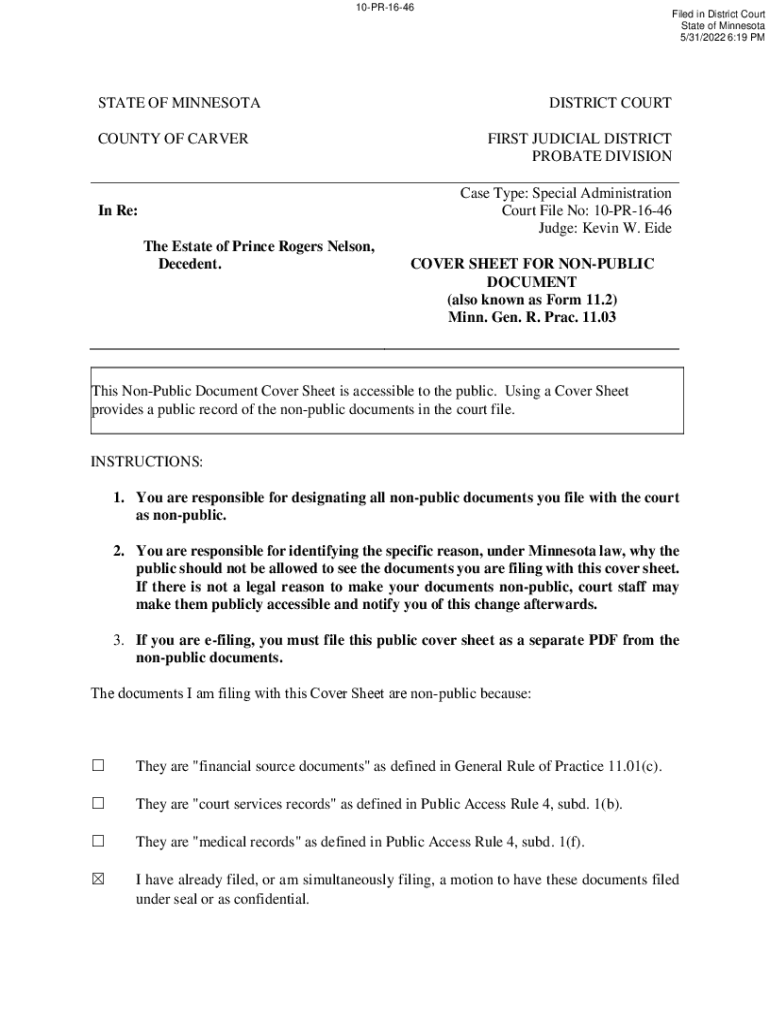 10PR1646Filed in District Court State of Minnesota 5/31/2022 6:19 STATE OF MINNESOTA COUNTY OF CARVERDISTRICT COURT FIRST JUDICIAL DISTRICT PROBATE DIVISION Case Type: Special Administration Court