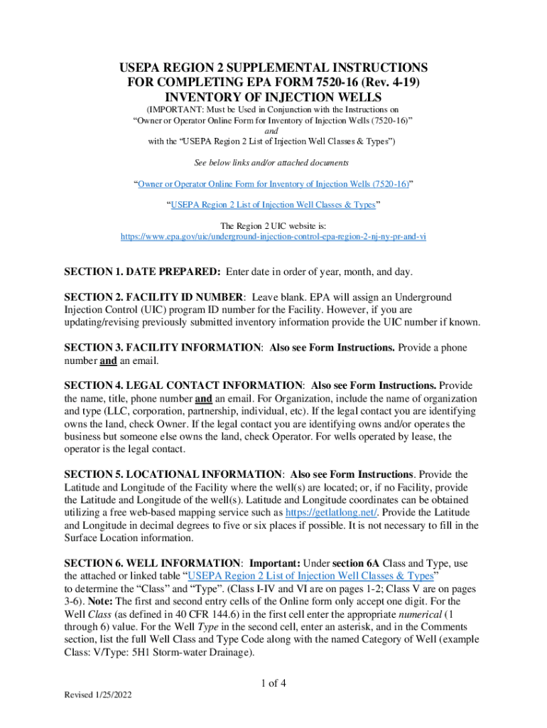 SEPA REGION 2 SUPPLEMENTAL INSTRUCTIONS FOR COMPLETING EPA FORM 752016 (Rev. 419) INVENTORY OF INJECTION WELLS (IMPORTANT: Must be Used in Conjunction with the Instructions on Owner or Operator Online