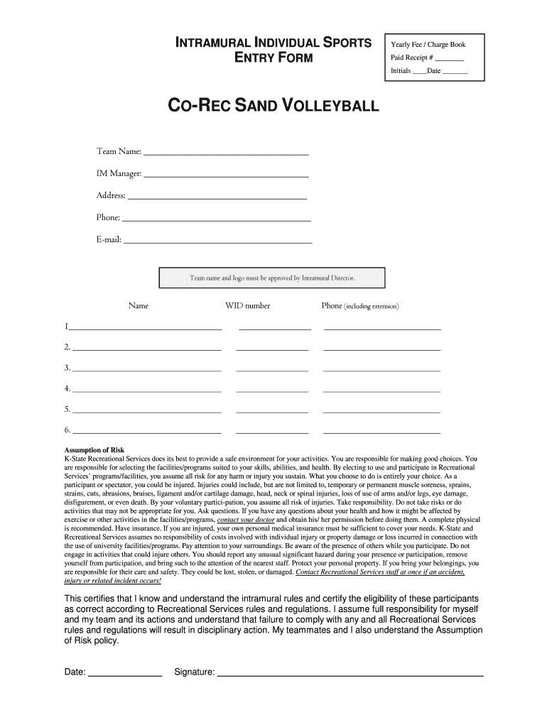 Anyone participating in a j 4-on-4 sand volleyball tournament may be required to file the necessary paperwork.