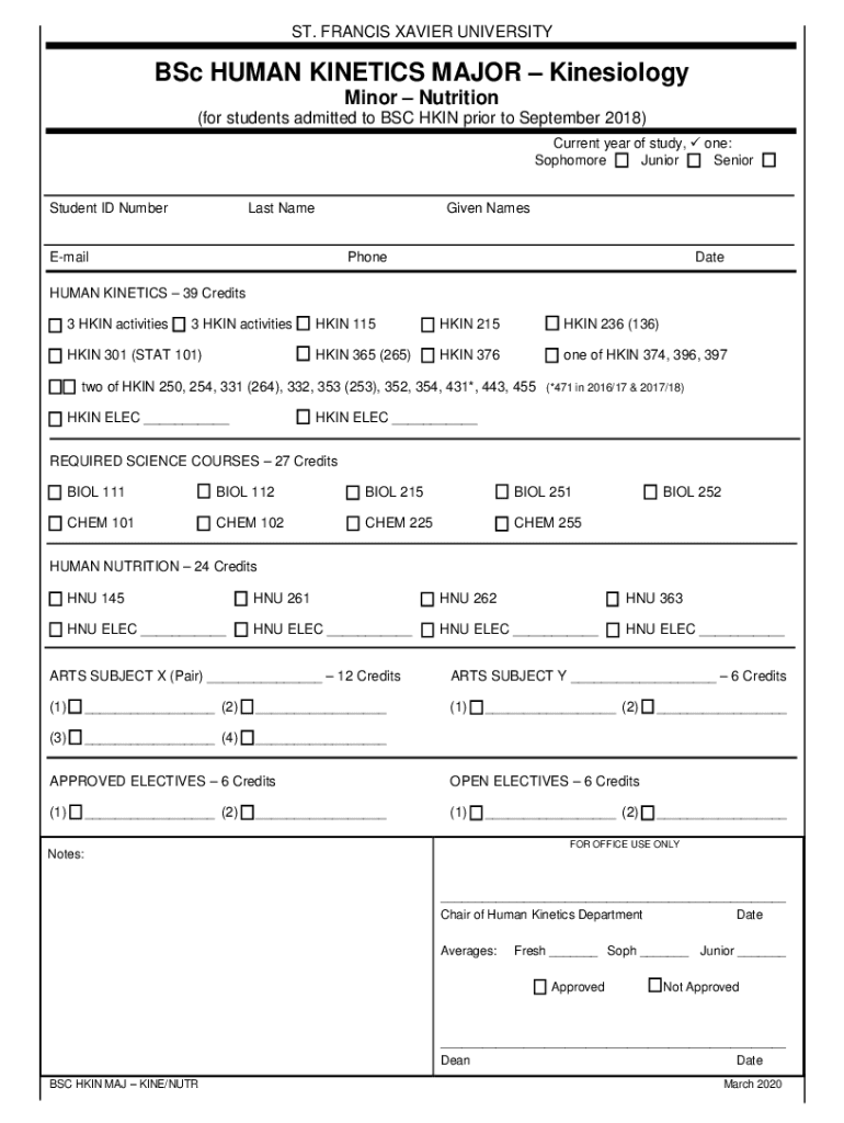 Bsc Human Kinetics Majorkinesiology is not the form you're looking for?Search for another form here.