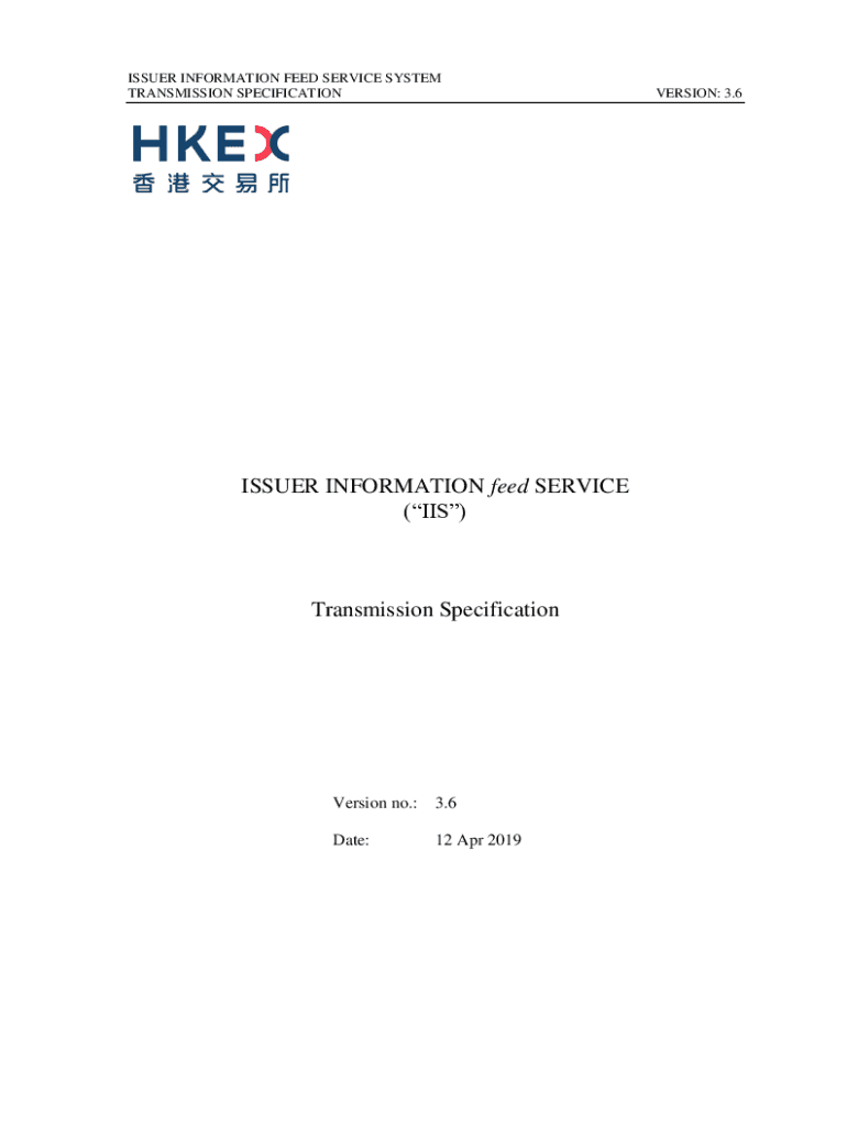 ISSUER INFORMATION FEED SERVICE SYSTEM TRANSMISSION SPECIFICATIONISSUER INFORMATION feed SERVICE (IIS)Transmission SpecificationVersion no.:3.6Date:12 Apr 2019VERSION: 3.6ISSUER INFORMATION FEED SERVICE